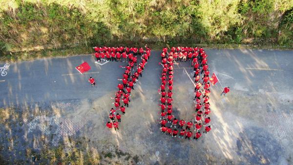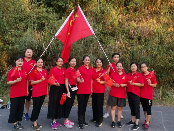 當(dāng)天下午15點(diǎn),報(bào)名參加的員工統(tǒng)一坐大巴前往仰天崗國家森林公園,森林公園里群山起伏,林木蔥郁,是新余名副其實(shí)的城市后花園和綠色生態(tài)屏障,被譽(yù)為“城市綠肺”和“天然氧吧”。從龍盤隧道登山口開始,大家興致盎然,一路上說說笑笑,一邊欣賞著優(yōu)美的風(fēng)景,一邊分享著各自的喜悅。登上山頂后,大家依序排成“70”隊(duì)形,揮動(dòng)手中的紅旗,大聲歌唱《我和我的祖國》。