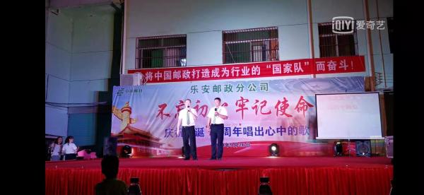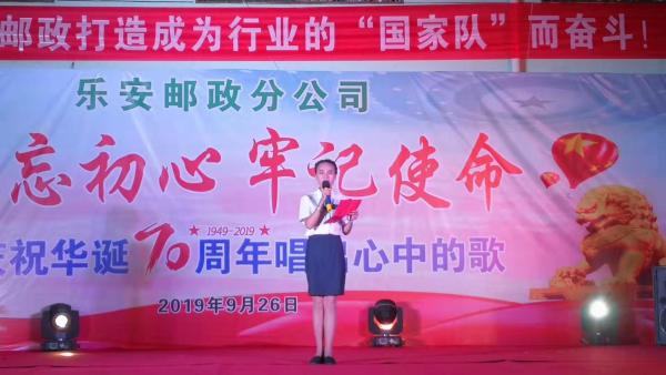 9月26日,為慶祝祖國70華誕,結(jié)合“不忘初心·牢記使命”主題教育活動,樂安縣郵政工會與黨建部聯(lián)合舉辦了“慶祝華誕70周年·唱出心中的歌”文藝晚會。