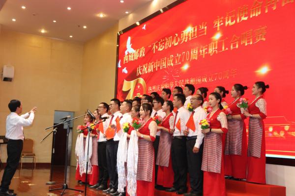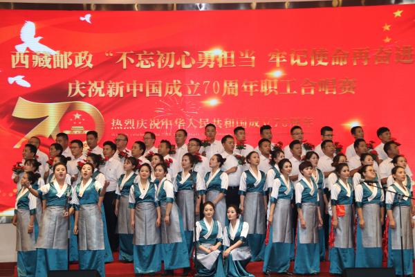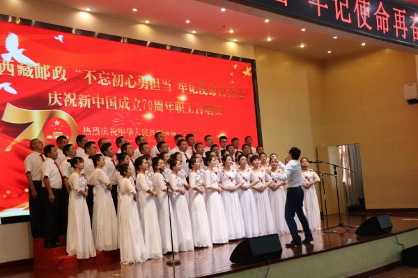 為隆重慶祝中華人民共和國成立70周年,深化西藏郵政系統(tǒng)“不忘初心 牢記使命”主題教育,豐富職工群眾文化生活,唱響愛國主義主旋律,進(jìn)一步增強(qiáng)西藏郵政廣大干部職工初心使命意識(shí),銘記革命歷史,弘揚(yáng)民族精神,展現(xiàn)積極向上朝氣蓬勃的精神風(fēng)貌。9月26日下午,西藏郵政開展“不忘初心勇?lián)?dāng)、牢記使命再奮進(jìn)”慶祝中華人民共和國成立70周年職工合唱比賽,來自拉薩郵政單位的4支代表隊(duì)的150名干部職工參加了本次比賽。