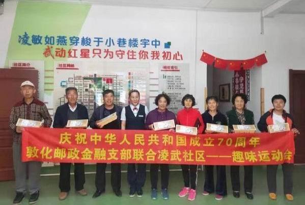 9月26日上午,敦化市分公司金融黨支部在曙光支局聯(lián)合凌武社區(qū)開展“慶祝中華人民共和國(guó)成立70周年 趣味運(yùn)動(dòng)會(huì)”活動(dòng)。