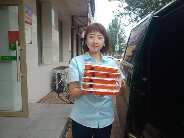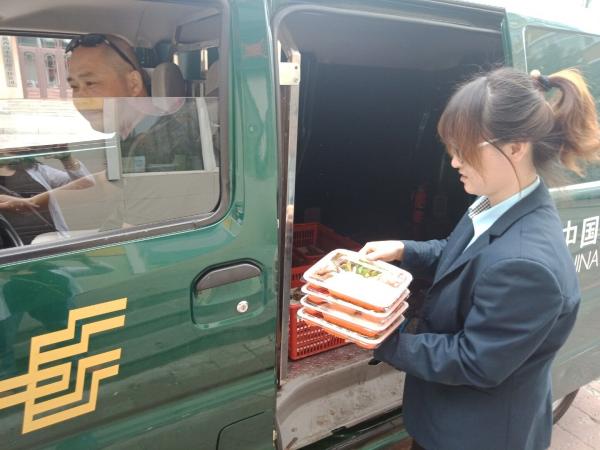每天中午11:00時,一輛郵政面包車準時從郵政大院出發(fā),駛向各個郵政網(wǎng)點,用一個小時的時間,為市區(qū)郵政十二個網(wǎng)點員工送去盒裝飯菜。網(wǎng)點的同事一聽汽車喇叭聲,就會打開安排人小心打開門禁,高興地出來迎接熱騰騰的飯菜。為了防止網(wǎng)點員工不夠吃,每個網(wǎng)點預訂兩份以上的飯就額外送兩盒飯菜,讓大家吃得飽飽的。