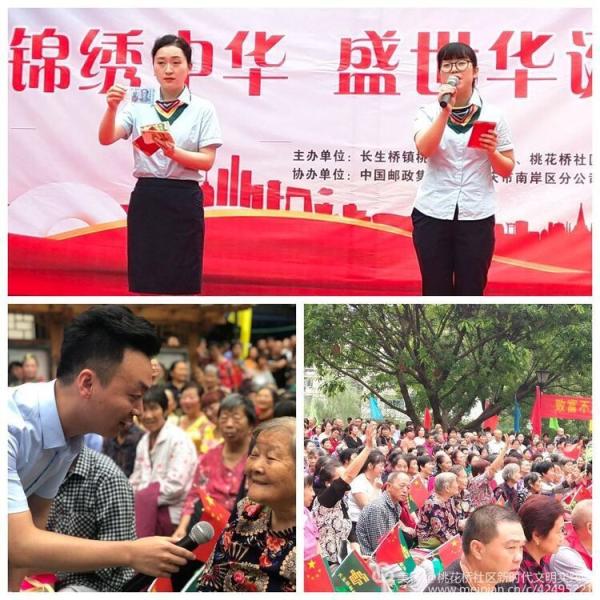 為慶祝祖國(guó)母親70歲生日,弘揚(yáng)中華民族敬老、愛(ài)老、助老的傳統(tǒng)美德,豐富廣大人民群眾文化娛樂(lè)生活,中郵重慶市南岸區(qū)分公司長(zhǎng)生橋支局聯(lián)合桃花橋社區(qū)在富翔廣場(chǎng)舉行“錦繡中華,盛世華誕”慶祝建國(guó)70周年文藝演出。