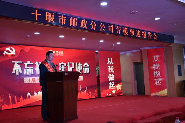 10月26日,十堰市分公司隆重舉辦“不忘初心、牢記使命”勞模事跡報(bào)告會(huì)。對(duì)照先進(jìn)典型,弘揚(yáng)勞模精神,激勵(lì)全市郵政員工進(jìn)一步強(qiáng)化堅(jiān)定責(zé)任、勇于擔(dān)當(dāng)、奮發(fā)有為,用先進(jìn)的思想武裝人,用身邊的榜樣感染人,用高效的執(zhí)行引領(lǐng)人,用優(yōu)秀的業(yè)績(jī)鼓舞人。市分公司領(lǐng)導(dǎo),市分公司各部室、直屬單位負(fù)責(zé)人,各縣(市、區(qū))分公司領(lǐng)導(dǎo)班子成員,全市網(wǎng)點(diǎn)支局經(jīng)理等150余人參加了報(bào)告會(huì)。