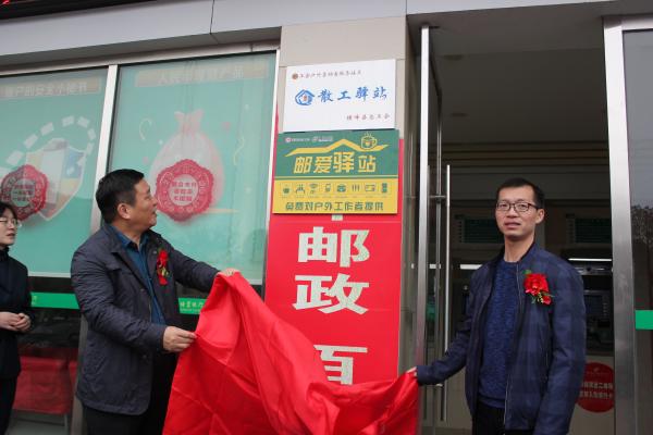 為貫徹落實(shí)集團(tuán)公司“人民郵政為人民”的戰(zhàn)略部署,積極響應(yīng)江西省總工會(huì)關(guān)于推進(jìn)戶外勞動(dòng)者“愛心驛站”建設(shè)的倡議,打造高質(zhì)量服務(wù)人民、服務(wù)社會(huì)的責(zé)任感企業(yè),增進(jìn)郵政企業(yè)與社會(huì)公眾之間和諧、共贏的社會(huì)關(guān)系,11月28日上午,橫峰縣總工會(huì)與橫峰縣郵政分公司在人民大道郵政所共同舉辦了“郵愛驛站”暨“散工驛站”揭牌儀式。橫峰縣人大常委會(huì)副主任、縣總工會(huì)主席聶朝陽,縣郵政分公司副總經(jīng)理林峰,縣環(huán)衛(wèi)所領(lǐng)導(dǎo)及相關(guān)單位員工、戶外勞動(dòng)者代表近20人參加了儀式。聶朝陽和林峰分別講話,并共同為“郵愛驛站”暨“散工驛站”揭牌。