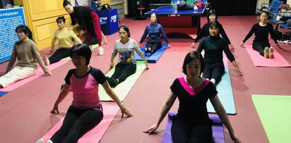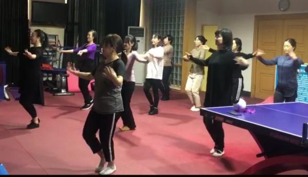 伴隨著悅耳的旋律,在拉伸訓(xùn)練中,在抬手旋轉(zhuǎn)中,身體得到舒展,心情變得愉悅起來......