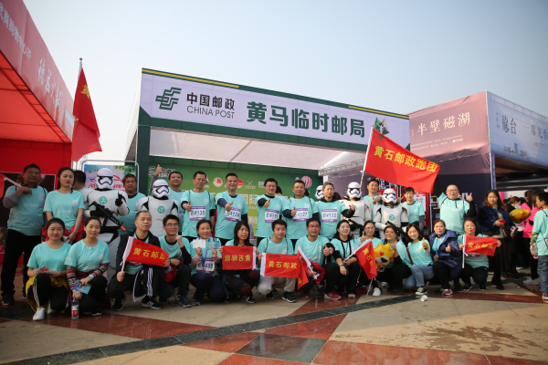 為更好服務(wù)和推廣2019年黃馬賽事,展現(xiàn)黃石依山傍水的城市美景,黃石市分公司精心設(shè)計(jì)黃馬紀(jì)念明信片,廣大跑友和市民朋友可以在現(xiàn)場(chǎng)設(shè)置的黃馬臨時(shí)郵局為紀(jì)念明信片加蓋紀(jì)念郵戳,現(xiàn)場(chǎng)的5名“白兵戰(zhàn)士”為大賽加“郵”助威,吸引廣大跑友和市民朋友駐足合影留念。