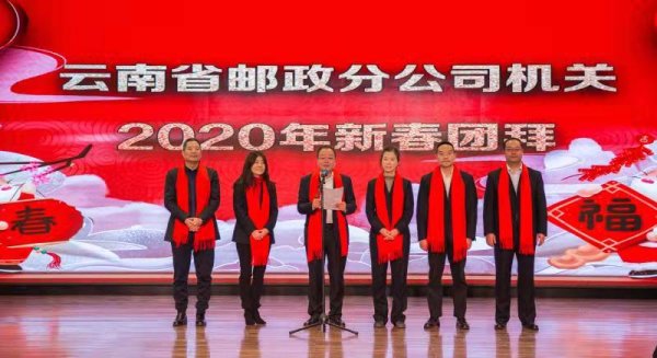春滿神州喜滿懷,紫氣滿堂萬象新。中國農(nóng)歷“小年”來臨之際,云南省郵政分公司舉辦2020年“龍騰獅躍賀新春”團拜活動。分公司黨委班子全體成員、各單位領(lǐng)導(dǎo)及職工代表230余人參加。