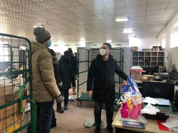 在得知疫情消息后,大年初三由總經(jīng)理組建疫情防控領(lǐng)導(dǎo)小組,建立微信群,明確各部門(mén)分工,有序安排疫情防控和生產(chǎn)經(jīng)營(yíng)工作。班子成員提前返崗,對(duì)營(yíng)投、車(chē)隊(duì)、營(yíng)業(yè)網(wǎng)點(diǎn)進(jìn)行走訪,發(fā)放防疫物品,并對(duì)相關(guān)生產(chǎn)場(chǎng)地、車(chē)輛和用品進(jìn)行消毒。郵政工會(huì)配合市場(chǎng)部在齊市、訥河等地采購(gòu)口罩、消毒液、酒精、手套、額溫槍、體溫計(jì)等防疫物品并結(jié)合市公司下發(fā)防疫物品,最大限度保障一線職工防護(hù)物品使用用量。工會(huì)人員還參與到一線生產(chǎn)工作中,嚴(yán)控各生產(chǎn)環(huán)節(jié)操作風(fēng)險(xiǎn),全力保證一線人員防疫物品供應(yīng)和生產(chǎn)安全保障。