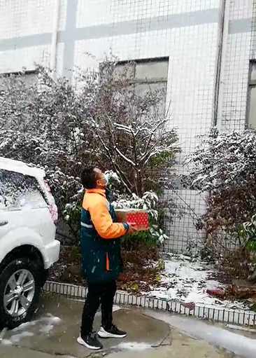 因交通管制,投遞人員緊張,荊門郵政城區(qū)分公司政商部經(jīng)理張發(fā)彬自愿加入投遞工作,成為了一名代班投遞員,一大早就開始了投遞工作。雖然這才是他當(dāng)天投遞的第8個(gè)包裹,但一雙抱著郵件的手早已經(jīng)凍得通紅。
