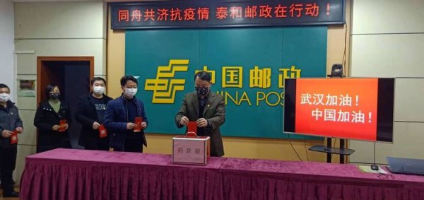 當天,泰和縣郵政工會在二樓電視電話會議室組織了“同舟共濟抗疫情,泰和郵政在行動”的現(xiàn)場捐款活動,現(xiàn)場打出了“武漢加油!中國加油!”的標語??h分公司領導帶頭捐款,機關員工積極響應,不到半天時間就收到5100元捐款。全縣郵政職工也紛紛加入到抗疫捐款活動之中,截至2月18日,共募得善款 1.19萬元。據悉,該筆愛心款將全部交由縣紅十字會統(tǒng)一安排。(江西省郵政工會)