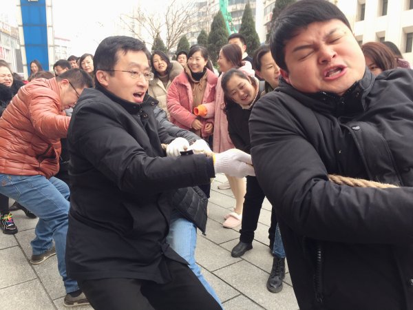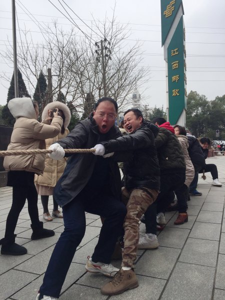 表彰活動結束后,開始了拔河比賽,江西省分公司直屬機關五個工會小組各選派了一支代表隊參與了比賽。比賽采取淘汰制,三局兩勝。比賽中,雙方選手都各不相讓、拼盡全力去爭取勝利;“加油、加油……”雙方的拉拉隊員都在為參賽隊員們打氣鼓勁,助威聲和歡呼聲此起彼伏。經過近1個小時的激烈比拼,第一工會小組榮獲了第一名,第五工會小組榮獲了第二名。