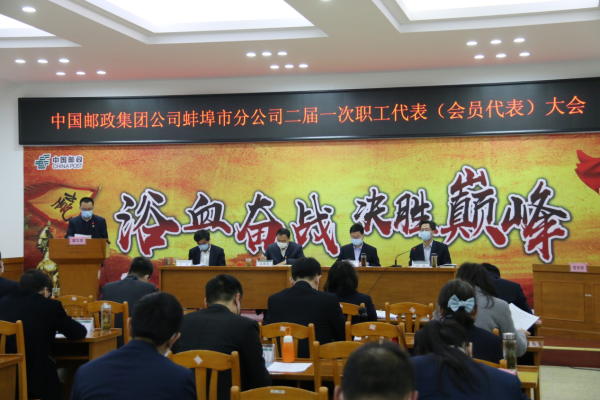 4月10日,蚌埠市郵政分公司召開二屆一次職工代表(會員代表)大會。根據(jù)疫情防控工作的需要,結(jié)合公司實際情況,本次會議采取現(xiàn)場會和電視電話會議的方式開展,全市共設(shè)置4個會場,80名職工代表參加此次大會。