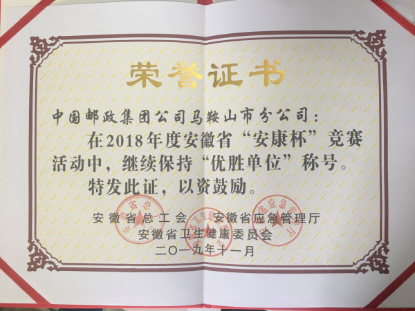 4月20日下午,市總工會召開全市工會十二屆十二次全體(擴大)會議,會上馬鞍山市郵政市分公司受到表彰,榮獲“2018年度安徽省安康杯競賽優(yōu)勝單位”稱號。 安徽省“安康杯”競賽是在省委、省政府的堅強領(lǐng)導下,按照中華全國總工會和國家安全生產(chǎn)監(jiān)督管理總局的統(tǒng)一部署,全省企事業(yè)單位積極參與,以“廣泛發(fā)動提質(zhì)量,文化引領(lǐng)強基礎(chǔ)”為主題的“安康杯”競賽活動,是安全生產(chǎn)最高榮譽獎牌。