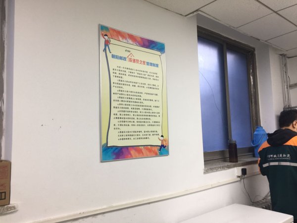 徹落實市分公司工會《關(guān)于開展2019年職工服務(wù)陣地建設(shè)資金使用情況及投遞員之家“五統(tǒng)一”規(guī)范化管理自查工作的通知》文件要求,進一步規(guī)范職工小家、投遞員之家的管理,發(fā)揮職工小家直接聯(lián)系職工、直接服務(wù)職工、直接維護職工合法權(quán)益的作用。朝陽郵政工會于4月初開始立行立改,統(tǒng)一制定出了《朝陽郵政職工小家管理制度》、《朝陽郵政投遞員之家管理制度》,并制作了生動形象的宣傳展板,配以職工維權(quán)熱線宣傳頁,安置于了全區(qū)每一個職工小家、投遞員之家之中。