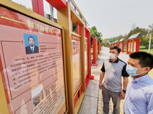 2020年5月6日,山東濟南,在泉城廣場“最美奮斗者”系列展示長廊,市民觀看“最美奮斗者” 其美多吉事跡介紹。據(jù)了解,該長廊由濟南市精神文明辦、濟南泉城廣場管理處聯(lián)合主辦,自五一開展,常年展覽。長廊共展示新中國成立以來全國各個時期各行各業(yè)的優(yōu)秀工作者(集體)300個,其中個人278名,集體22個。其中,中國郵政員工其美多吉、王順友在列。這些“最美奮斗者”奮斗在祖國的各個行業(yè),兢兢業(yè)業(yè),立足平凡崗位,為國家富強、民族振興、社會和諧、人民幸福貢獻著自己的力量。