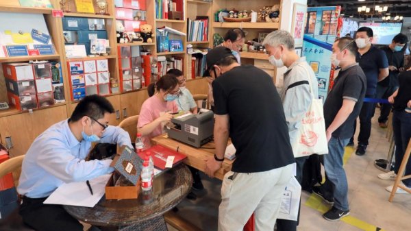 與首發(fā)活動(dòng)同步開展的還有當(dāng)天發(fā)行的《520我愛你》郵資機(jī)宣傳戳加蓋活動(dòng),郵迷粉絲有序排著長隊(duì)來到航海郵局文創(chuàng)工作室加蓋,活動(dòng)現(xiàn)場氣氛熱烈。(上海郵政工會(huì))