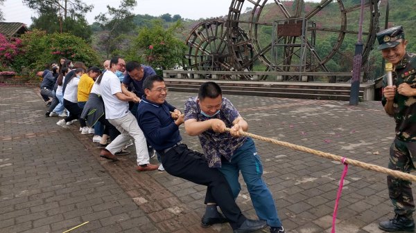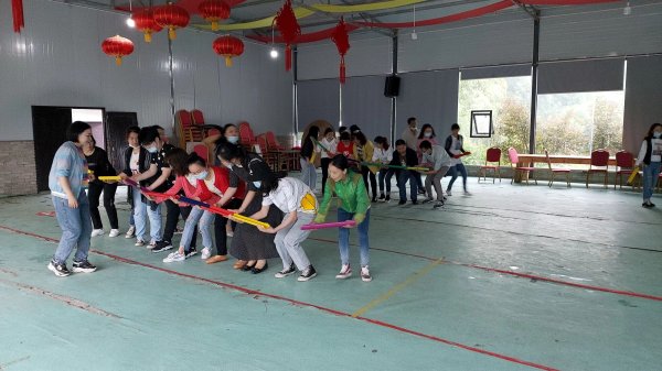 除了集體項目下午自由活動一小時,男生垂釣、競走,女生進竹谷水澗三三兩兩走走坐坐交心談心,也有的暢游在三角梅花坡中拍抖音……在拍完集體照后,乘車返回。5月30日活動結束當天,片區(qū)總經理張勇、工會主席王勇也來到活動現場,為員工打氣助力,本次活動圓滿結束。