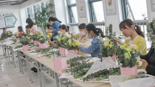 為進(jìn)一步弘揚(yáng)孝順父母、珍視親情的傳統(tǒng)美德,豐富員工精神生活,滁州市分行于5月9日下午15:00組織開展“感恩母親,愛滿郵儲(chǔ)”為主題的母親節(jié) DIY 花籃活動(dòng)。市分行工會(huì)特邀專業(yè)花藝?yán)蠋熤笇?dǎo)現(xiàn)場(chǎng)指導(dǎo),大家積極主動(dòng)和花藝?yán)蠋熃涣鞑寤记?,?xì)心裁剪眼前的花枝,并將新鮮采摘的花朵依序插入花盒內(nèi)?!叭吮然▼苫o(wú)色,花在人前亦黯然。”大家捧著親手制作的插花,滿滿的幸福洋溢在臉上?;顒?dòng)期間,該行楊志強(qiáng)行長(zhǎng)親赴現(xiàn)場(chǎng),與員工們交流插花,表達(dá)對(duì)女員工的節(jié)日祝福。