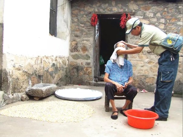 東新鄉(xiāng)白鶴村十二組魯錢華的老伴吳阿姨患有嚴(yán)重的冠心病,20年來,每次都是顏其旺幫她買藥。一天傍晚,吳阿姨的病又犯了,家里的藥已經(jīng)吃完了,她急忙打電話給顏其旺說等藥救命。支局食堂剛開飯,顏其旺接到電話后,扒了兩口飯把碗放下,立即到藥店買了兩盒藥騎上麾托車直奔魯錢華家。吳阿姨熱淚盈眶,感激地說:“小顏,我的孩子不在身邊,你比我的兒子還親??!”