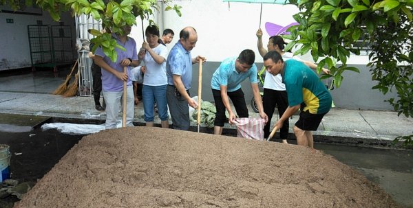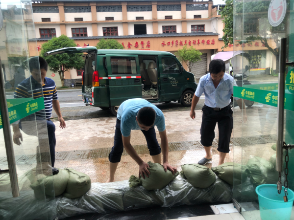 面對(duì)不斷涌進(jìn)的積水,大家商議決定,只有用沙袋在門口阻隔才能擋住水進(jìn)來(lái)。在這種暴雨不停,街上積水成河的情況下,哪里尋得到沙子呢?關(guān)鍵時(shí)刻,李文娟同志打電話給家人,冒雨送來(lái)一車沙子??h公司領(lǐng)導(dǎo)帶領(lǐng)中層干部和普通員工馬上又來(lái)到場(chǎng)地,部分人員清理積水,部分人員裝沙制袋。最讓人感動(dòng)的是臨近退休的舒信財(cái)同志,忍著腳痛也主動(dòng)參與抗洪防汛工作。雨水、汗水打濕了衣服也不管不顧,領(lǐng)導(dǎo)勸他休息他說(shuō)不累。經(jīng)過(guò)大家的齊心協(xié)力,場(chǎng)地的積水被清理干凈,120個(gè)沙袋也做好了。小沙袋被整齊得碼放在倉(cāng)庫(kù)、電力室、機(jī)要室、分揀房門口,形成了一道防護(hù)屏障。
