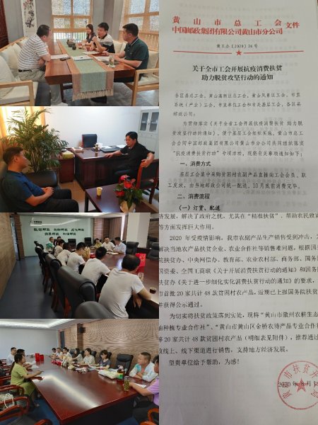 自省郵政工會組織開展開展抗疫消費扶貧助力脫貧攻堅行動以來,黃山市分公司領導高度重視,市郵政工會會同市渠道平臺部多次會商市總工會、市扶貧開發(fā)局等部門,獲得了政府領導的認可和支持。近日,黃山市總工會與市郵政公司聯(lián)合發(fā)文,特別明確了黃山郵政的主渠道作用,指定各基層工會組織集中采購貧困村農副產品要統(tǒng)一到郵政公司要數,由郵政公司統(tǒng)一配送,并將貨款匯入郵政指定賬戶。