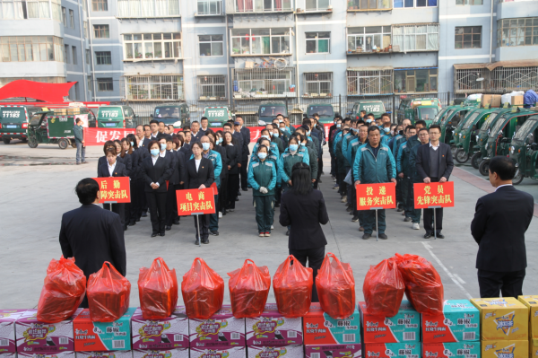 10月29日上午,甘肅白銀郵政分公司、白銀市郵政工會(huì)組織召開(kāi)旺季生產(chǎn)服務(wù)保障動(dòng)員大會(huì)暨集體慰問(wèn)活動(dòng)。 白銀郵政分公司黨委書(shū)記、總經(jīng)理褚艷代表市分公司黨委作了動(dòng)員講話,號(hào)召全體干部職工圍繞“促發(fā)展、保暢通、重體驗(yàn)”旺季生產(chǎn)工作總體要求,堅(jiān)決打贏白銀郵政旺季生產(chǎn)服務(wù)保障攻堅(jiān)戰(zhàn)。同時(shí)對(duì)工會(huì)提出四點(diǎn)要求:一是工會(huì)要認(rèn)真履行服務(wù)職責(zé),全心全意服務(wù)旺季生產(chǎn)、服務(wù)一線員工。積極開(kāi)展慰問(wèn)工作,把組織的關(guān)懷和溫暖送到廣大員工的心坎上。二是工會(huì)干部要積極作為,深入班組幫助解決員工生產(chǎn)生活中的實(shí)際困難和問(wèn)題,當(dāng)好職工的“娘家人”。三是發(fā)揮職工小家、職工之家作用,切實(shí)做好旺季生產(chǎn)員工就餐、飲水、休息、保暖等服務(wù)工作。動(dòng)員會(huì)上,黨員先鋒突擊隊(duì)、投遞服務(wù)突擊隊(duì)、電商項(xiàng)目突擊隊(duì)、后勤保障突擊隊(duì)代表依次宣誓。市分公司主要領(lǐng)導(dǎo)為職工們送上了方面便、圍脖、手套等慰問(wèn)品。 為認(rèn)真開(kāi)展旺季生產(chǎn)員工慰問(wèn)活動(dòng),白銀郵政工會(huì)提前制定計(jì)劃,細(xì)化措施。通過(guò)網(wǎng)上問(wèn)卷調(diào)查征求員工對(duì)慰問(wèn)品種的選擇意向和建議,依據(jù)調(diào)查結(jié)果確定采購(gòu)了3.25萬(wàn)元慰問(wèn)用品;職工食堂、小家食堂在旺季生產(chǎn)期間為寄遞崗位員工提供免費(fèi)就餐和夜餐服務(wù);配合行政對(duì)郵運(yùn)車(chē)輛、職工宿舍、食堂等設(shè)施設(shè)備安全實(shí)施了全面檢查,為順利完成旺季生產(chǎn)工作任務(wù)提供有力保障。