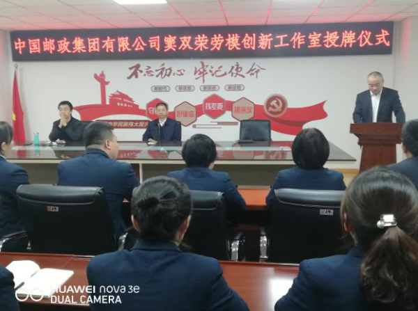 在授牌儀式上,天水市分公司工會(huì)主席宣讀了《中國(guó)郵政集團(tuán)有限公司 中國(guó)郵政集團(tuán)工會(huì)關(guān)于命名“中國(guó)郵政集團(tuán)有限公司勞模創(chuàng)新工作室”的通知》(中國(guó)郵政聯(lián)【2020】363號(hào))文件;省分公司副總經(jīng)理、工會(huì)主席郭雨聲為榮獲集團(tuán)公司勞模創(chuàng)新工作室的竇雙榮團(tuán)隊(duì)現(xiàn)場(chǎng)進(jìn)行授牌,同時(shí),他對(duì)竇雙榮團(tuán)隊(duì)獲此殊榮致以熱烈祝賀,鼓勵(lì)他們?cè)谛聲r(shí)代,大力弘揚(yáng)勞模精神和工匠精神,充分發(fā)揮好集團(tuán)公司勞模創(chuàng)新工作室的功能和作用,搭建好學(xué)習(xí)交流、能力傳授、創(chuàng)新創(chuàng)意、成果展示的有效平臺(tái),在提升職工技能素質(zhì)、加強(qiáng)客戶開(kāi)發(fā)和維護(hù)、促進(jìn)技術(shù)進(jìn)步、推動(dòng)企業(yè)創(chuàng)新發(fā)展等方面為郵政行業(yè)樹(shù)立標(biāo)桿,希望他們?cè)诮窈蟮墓ぷ髦?,珍惜榮譽(yù),再接再厲,再創(chuàng)佳績(jī)。市分公司總經(jīng)理張?zhí)显谑谂苾x式上講話強(qiáng)調(diào),竇雙榮勞模創(chuàng)新工作室榮獲集團(tuán)公司勞模創(chuàng)新工作室,這個(gè)榮譽(yù)來(lái)之不易,竇雙榮同志帶領(lǐng)其團(tuán)隊(duì)大膽創(chuàng)新發(fā)展郵政業(yè)務(wù),近幾年取得了驕人的業(yè)績(jī),為天水郵政高質(zhì)量發(fā)展發(fā)揮了表率引領(lǐng)、傳承引領(lǐng)、協(xié)同攻關(guān)等作用,希望他們繼續(xù)發(fā)揮好創(chuàng)新工作室的示范引領(lǐng)作用,不斷激發(fā)廣郵政職工創(chuàng)新活力。竇雙榮作為創(chuàng)新工作室領(lǐng)銜人在授牌儀式上匯報(bào)了創(chuàng)新工作室工作情況和主要事跡。最后,麥積區(qū)分公司領(lǐng)導(dǎo)作了表態(tài)發(fā)言。