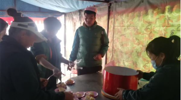 今年“雙11”,運(yùn)河攬投部承擔(dān)著大量的郵件的接收與二次分揀工作,為了保證投遞員能吃上熱乎飯,曹玉嶺不僅親自下廚,還從自已家里帶來大棚支在投遞現(xiàn)場?!芭腹こ獭弊尨蠹业男木墼诹艘黄?,攬投部所有人員每天早上4點(diǎn)到崗,晚上投遞到凌晨,確保了郵件不積壓、不滾存。(北京郵政工會(huì))
