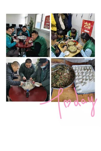 一大早,工作人員就來到食堂,和面的和面,切菜的切菜,調(diào)餡的調(diào)餡,大家用自己拿手的方式包著各式各樣的餃子。當一盆盆熱氣騰騰的餃子端上來時,職工們一片歡呼:“吃餃子嘍!熱氣騰騰的小餃子來嘍!”大家一邊品嘗著美食,一邊分享著快樂,到處洋溢著“家”的味道、“家”的溫馨。