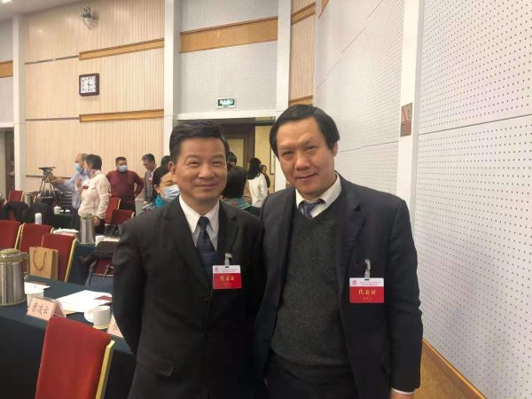 省郵政文聯(lián)主席陳勝達(dá)與省文聯(lián)副主席翁仁康合影