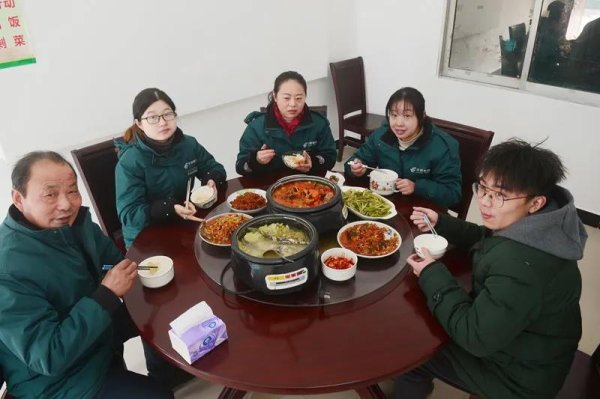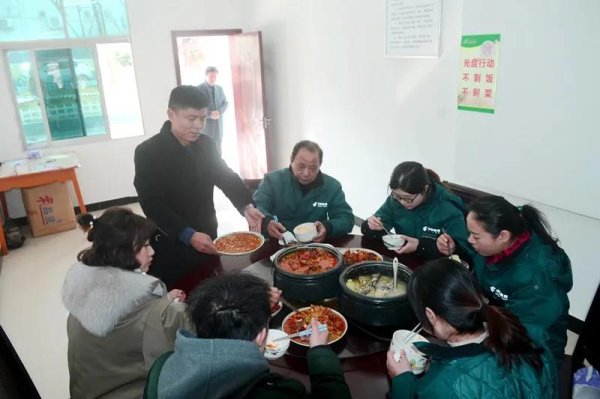 看到大家拼命工作的狀態(tài),作為支局經(jīng)理,項(xiàng)順成認(rèn)為必須為員工做點(diǎn)什么。在項(xiàng)順成的提議下,福田支局旺季生產(chǎn)期間每月給小食堂增加500元補(bǔ)貼,讓辛苦了一天的員工晚上能“加雞腿”。在湖北,一進(jìn)臘月,臘魚(yú)臘肉就是家家戶戶餐桌上必不可少的一道菜,支局小食堂也為員工安排上了。熱氣騰騰的黃顙魚(yú)火鍋、鴨子燒胡蘿卜,湖區(qū)特色的鲊?yán)苯泛◆~(yú),還有蒸臘魚(yú)、時(shí)令蔬菜、雞蛋湯……小食堂的豐盛午餐,讓員工們有了家的感覺(jué)。