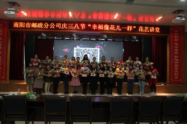 為慶祝“三八”國(guó)際勞動(dòng)?jì)D女節(jié),豐富女職工精神文化生活,展示南陽(yáng)郵政女員工良好的精神風(fēng)貌,3月5日下午,南陽(yáng)市郵政分公司舉辦了“幸福像花兒一樣”花藝講堂活動(dòng)?;顒?dòng)邀請(qǐng)了花藝?yán)蠋煬F(xiàn)場(chǎng)授課,近百名女職工參與了活動(dòng)。