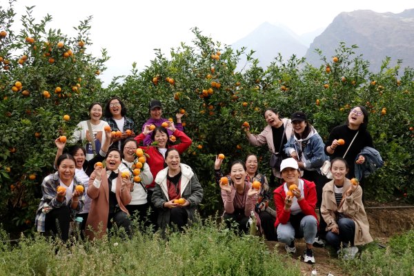 到了芒寬柑橘園,大家自覺結(jié)隊(duì),信步觀賞橘園風(fēng)景。首先是紫花道大合影,因?yàn)檫@將是下一個(gè)網(wǎng)紅打卡點(diǎn),來自郵政“女神”們自詡不凡的判斷;其次是彩虹橋擺渡體驗(yàn),因力量懸殊重心不穩(wěn)晃落的狼狽樣引得彼此捧腹大笑;最后是參觀柑橘園。大家爭(zhēng)先恐后的涌入園內(nèi),看著滿眼金燦燦的柑橘掛滿樹枝,頓時(shí)驚喜萬分,“我太愛了”!不知是誰忍不住喊了一聲。隨后就有人下意識(shí)的掏出手機(jī)拍照,有人摘果子嘗起來,有人發(fā)現(xiàn)了灰挑和苦圈圈迫不及待的找起來……“三八”節(jié),我們共赴花草,用一朵花開的時(shí)間,尋找最美麗的生活。返程時(shí),大家執(zhí)意要走老路,就為了看看三界橋邊火紅的攀枝花林,可惜天色已晚未如愿。大家興致盎然約定了看花時(shí)間,小娟說:“怒江的春天最美麗,我不想錯(cuò)過每個(gè)春季,特別是‘三八’活動(dòng),熱鬧又難忘”!