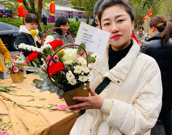此次活動(dòng)安排兩個(gè)環(huán)節(jié):1、全員參與游戲;2、女職工花藝插花。在女職工花藝插花環(huán)節(jié),花藝?yán)蠋熛冉o大家介紹了一些常見花種、插花基本花型和技巧,并進(jìn)行現(xiàn)場(chǎng)演示。職工們根據(jù)自己的喜好和老師的講解,將手里的鮮花一個(gè)個(gè)插到花籃里,在花藝?yán)蠋煹闹笇?dǎo)下,經(jīng)過1個(gè)多小時(shí)的精心擺弄,一個(gè)個(gè)精美的花籃在員工的手里完成。為讓活動(dòng)更有意義,拉近與大家的距離,分公司副總經(jīng)理兼工會(huì)主席彭文鋒根據(jù)參與人員的性格特點(diǎn),書寫了不同的祝福語,并親手將祝??ㄆ偷絾T工手里,大家滿心歡喜,每個(gè)人臉上都洋溢著幸??鞓返男θ荩詈蟠蠹沂峙踔约旱淖髌泛嫌傲裟?,場(chǎng)面十分溫馨。