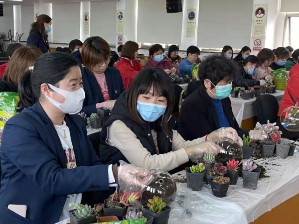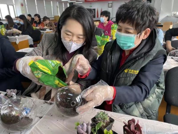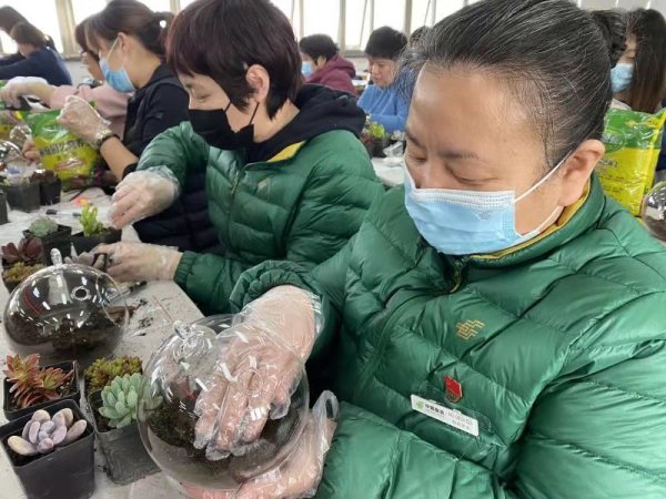老師細心的解釋著每一株多肉的習性, 耐心的為女職工們講解每一個步驟。大家圍坐一起,在老師的講解和指導(dǎo)下,手持小工具饒有趣味地制作起來。剖土、栽種、鋪石、裝飾……每個人都樂在其中。女職工們自己動手,打造出了自己的專屬微景觀盆栽,千姿百態(tài)、各有千秋,并且在美的感受中凈化心靈,得到了身心的放松,為接下來的工作注入了更多新鮮的力量。(北京郵政工會)