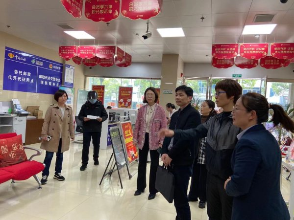 鶯飛草長(zhǎng),春暖花開(kāi)。3月17日,江西省總工會(huì)保障部副部長(zhǎng)李俊平、林嵐一行3人,蒞臨鷹潭市郵政分公司月湖環(huán)東營(yíng)業(yè)所調(diào)研“郵愛(ài)驛站”運(yùn)轉(zhuǎn)情況。鷹潭市分公司副總經(jīng)理辛志琴、工會(huì)副主席曾曉樺、月湖區(qū)分公司總經(jīng)理周春梅陪同調(diào)研。