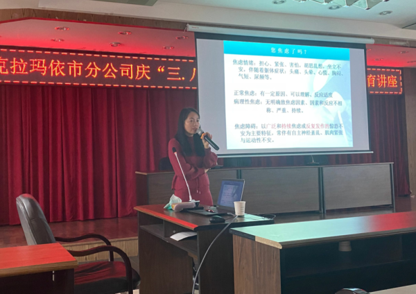 為慶?!叭藡D女節(jié)”,增強克拉瑪依郵政員工自我心理保健能力,把關(guān)心郵政員工身心健康落到實處,3月7日上午,特邀請克拉瑪依市中心醫(yī)院國家心里咨詢師,自治區(qū)骨干醫(yī)師王勤老師舉辦慶“三八”、“遇見最好的自己”心理健康講座,工會主席祝興剛以及各崗位的員工近50名參加活動。