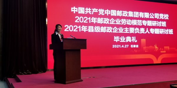 4月27日,在2021年郵政企業(yè)勞動模范專題研討班暨2021年縣級郵政企業(yè)主要負責人專題研討班的畢業(yè)典禮上,姜雪晶作為研討班勞動模范代表宣讀了《2021年郵政企業(yè)勞動模范專題研討班倡議書》。