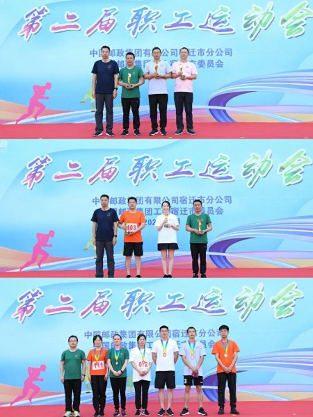 經(jīng)過一天的激烈角逐,根據(jù)各代表隊(duì)團(tuán)體項(xiàng)目總積分,沭陽縣分公司代表隊(duì)獲得第一名,城區(qū)分公司代表隊(duì)獲得第二名,宿遷市寄遞事業(yè)部分會代表隊(duì)獲得第三名。團(tuán)體項(xiàng)目頒獎之前,組委會并分別對男子、女子100米、鉛球、跳遠(yuǎn)、4×100米混合接力以及男子1000米、女子800米等單項(xiàng)項(xiàng)目的前三名進(jìn)行頒獎。