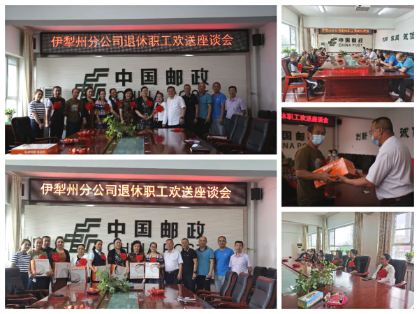 2021年6月11日下午,一場(chǎng)簡(jiǎn)單而溫馨的伊犁州分公司退休職工歡送座談會(huì)在三樓會(huì)議室舉行,州分公司黨委書記、總經(jīng)理張衛(wèi)江,紀(jì)檢書記、副總經(jīng)理郭新全和工會(huì)副主席黃建軍與退休職工及所在部門的負(fù)責(zé)人歡聚一堂,熱烈歡送11名光榮退休的郵政職工。