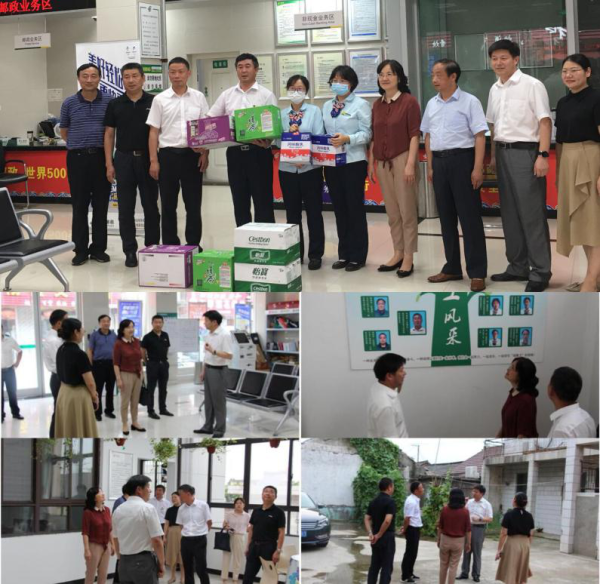 毛善群副主席一行人員在新橋支局,向高溫期間堅(jiān)守在一線(xiàn)的職工表示慰問(wèn),為他們送上礦泉水、綠茶等清涼物資。并向職工了解日常工作情況和高溫勞動(dòng)防護(hù)措施情況,叮囑一線(xiàn)職工做好防暑降溫措施,注意勞逸結(jié)合,保障自身的安全健康?,F(xiàn)場(chǎng)職工表示在炎熱的夏天,不僅身體感受到了清涼,心里也收獲了滿(mǎn)滿(mǎn)的溫暖。 毛善群副主席一行人員,聽(tīng)取了市分公司楊文主席對(duì)郵政公司開(kāi)展的普遍服務(wù)、助農(nóng)鄉(xiāng)村振興、郵政金融、快遞上門(mén)服務(wù)、農(nóng)村電商等工作的匯報(bào);接著,在楊文主席陪同下,先后來(lái)到網(wǎng)點(diǎn)“小菜園”、新橋支局“職工小家”進(jìn)行參觀(guān)。