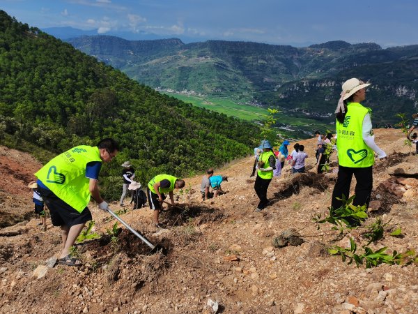 參加植樹人員到達(dá)活動(dòng)目的地后,爭(zhēng)先恐后地領(lǐng)取樹苗和植樹工具,徒步到了植樹地點(diǎn)。植樹過程中,大家熱情高漲、干勁十足,兩三人一組,分工合作,默契配合,有的揮鍬鏟土、有的定點(diǎn)掛坑、有的放苗回填,一片熱火朝天的勞動(dòng)場(chǎng)景,歡聲笑語不斷。眾人拾柴火焰高,經(jīng)過大家一上午的奮戰(zhàn),一共栽種了36棵芒果樹苗??粗约旱膭趧?dòng)成果,所有人心里充滿了喜悅,臉上都洋溢著微笑。