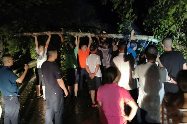 8月3日傍晚8時(shí),萬州區(qū)長(zhǎng)灘鎮(zhèn)迎來雷雨大風(fēng)天氣,剛在龍泉社區(qū)開完夜宣會(huì)的長(zhǎng)灘郵政所的6名員工開著兩輛車正行駛在返程途中,強(qiáng)勁的風(fēng)力突然將道路旁的大樹攔腰刮倒在路上,一車人驚魂未定,曾是退伍軍人、現(xiàn)任郵政網(wǎng)點(diǎn)金融柜員的吳浪迅速?gòu)能囍谐鰜?,帶領(lǐng)著小伙伴們和路人迅速投入到搶險(xiǎn)工作中,由于斷樹體積較大,一時(shí)間無法有效清理,經(jīng)過半個(gè)多小時(shí)的處理,眾人齊心協(xié)力終于將斷樹先推至路旁,并清理了路面,交通這才得以恢復(fù)。郵政小伙伴們冒雨疏導(dǎo)交通,清理斷枝的行為,引得路人們的贊譽(yù),通行車輛經(jīng)過長(zhǎng)灘郵政所員工身邊時(shí)都紛紛搖下車窗向他們表達(dá)謝意。