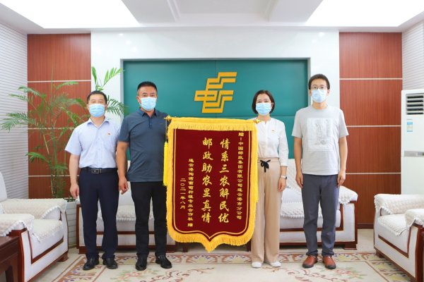 8月13日上午,在全國郵政行業(yè)勞動模范馬善民的帶領下,連云港市錦屏鎮(zhèn)陶灣村黨總支書記、陶灣葡萄種植專業(yè)合作社社長卞廣生來到連云港郵政分公司,送上一面“情系三農解民憂 郵政助農顯真情”的錦旗,向郵政助銷陶灣葡萄表示衷心感謝。