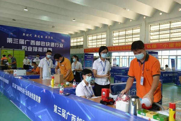 本次競(jìng)賽由自治區(qū)郵政管理局、自治區(qū)總工會(huì)主辦,廣西區(qū)分公司承辦,旨在深入貫徹落實(shí)習(xí)近平總書記在廣西考察時(shí)的重要指示以及關(guān)心關(guān)愛(ài)“快遞小哥”的重要指示精神,大力弘揚(yáng)勞模精神、勞動(dòng)精神、工匠精神和“小蜜蜂”精神,加快全區(qū)郵政快遞行業(yè)技能人才隊(duì)伍建設(shè)。(。共有13家郵政快遞企業(yè)96名選手參加。競(jìng)賽包括理論知識(shí)競(jìng)賽和操作技能競(jìng)賽兩部分,重點(diǎn)考評(píng)快遞員和快件處理員多物品收寄、派送路線設(shè)計(jì)、智能快件箱操作、總包接收處理、快件分揀和快件安檢等6個(gè)方面的理論知識(shí)和操作能力。