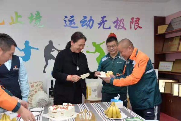 在支局長引導(dǎo)介紹下,一行人依次參觀了垡頭支局暖心驛站、職工小食堂、職工小家,詳細(xì)了解了電子書屋的建設(shè),表示出濃厚的興趣。恰逢當(dāng)日支局召開10月份職工集體生日會(huì),領(lǐng)導(dǎo)們?yōu)檫^生日的壽星們切了蛋糕并分發(fā)了生日禮物,送上生日祝福。