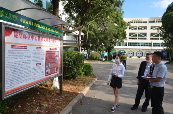 測評組對昆明郵區(qū)中心在文明單位創(chuàng)建工作中取得的實效給予了肯定。調(diào)查及訪談工作結(jié)束時,普顯榮組長代表測評組寄語昆明郵區(qū)中心“郵路連通群眾,愛心傳遞能量,科技注入動力,服務(wù)播撒文明 ”。