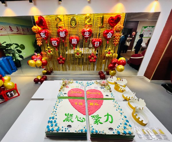 在雙十一業(yè)務(wù)高峰奮戰(zhàn)進(jìn)程中,為給一線員工鼓干勁、提士氣、送溫暖,11月10日,市分公司工會(huì)薛筠副主席、劉敏部長(zhǎng)來(lái)到東四郵政支局慰問員工,恰逢?yáng)|四部門工會(huì)舉辦"決戰(zhàn)雙十一"四季度生日會(huì),還專門定制了"東四郵局生日會(huì) 凝心聚力"大蛋糕。薛筠副主席、劉敏部長(zhǎng)參加了生日會(huì)活動(dòng),為大家送上一塊塊香甜的蛋糕和衷心的祝福,凝聚全員之力打好雙十一攻堅(jiān)戰(zhàn)!