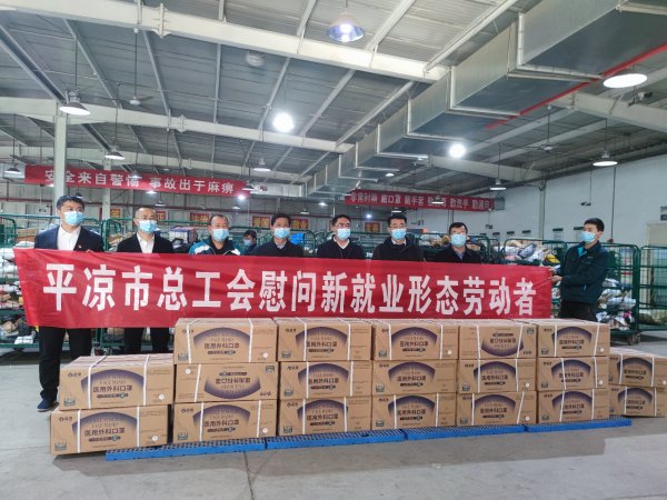 近日,甘肅平?jīng)鍪?、區(qū)工會(huì),區(qū)委、區(qū)政府對(duì)平?jīng)鍪朽]政分公司的“快遞小哥”和郵件處理一線員工等新就業(yè)形態(tài)勞動(dòng)者進(jìn)行慰問。