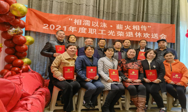杜輝在致辭中對同志們過去在各自工作崗位上為企業(yè)所做出的貢獻表示衷心感謝,希望大家退休不退志、離崗不離心,繼續(xù)多關(guān)心和支持企業(yè)的發(fā)展,?;亍凹摇笨纯醋咦撸⒂H自為每位退休同志一一送上榮譽證書和紀念品,同大家一起合影留念。